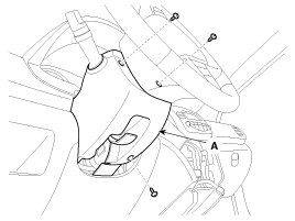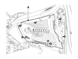 3. After loosening the mounting bolts and screws, then remove the crash pad lower panel (A).