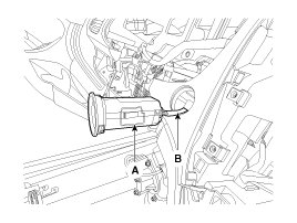 3. Disconnect the pin (A) and then remove the glove box (B).