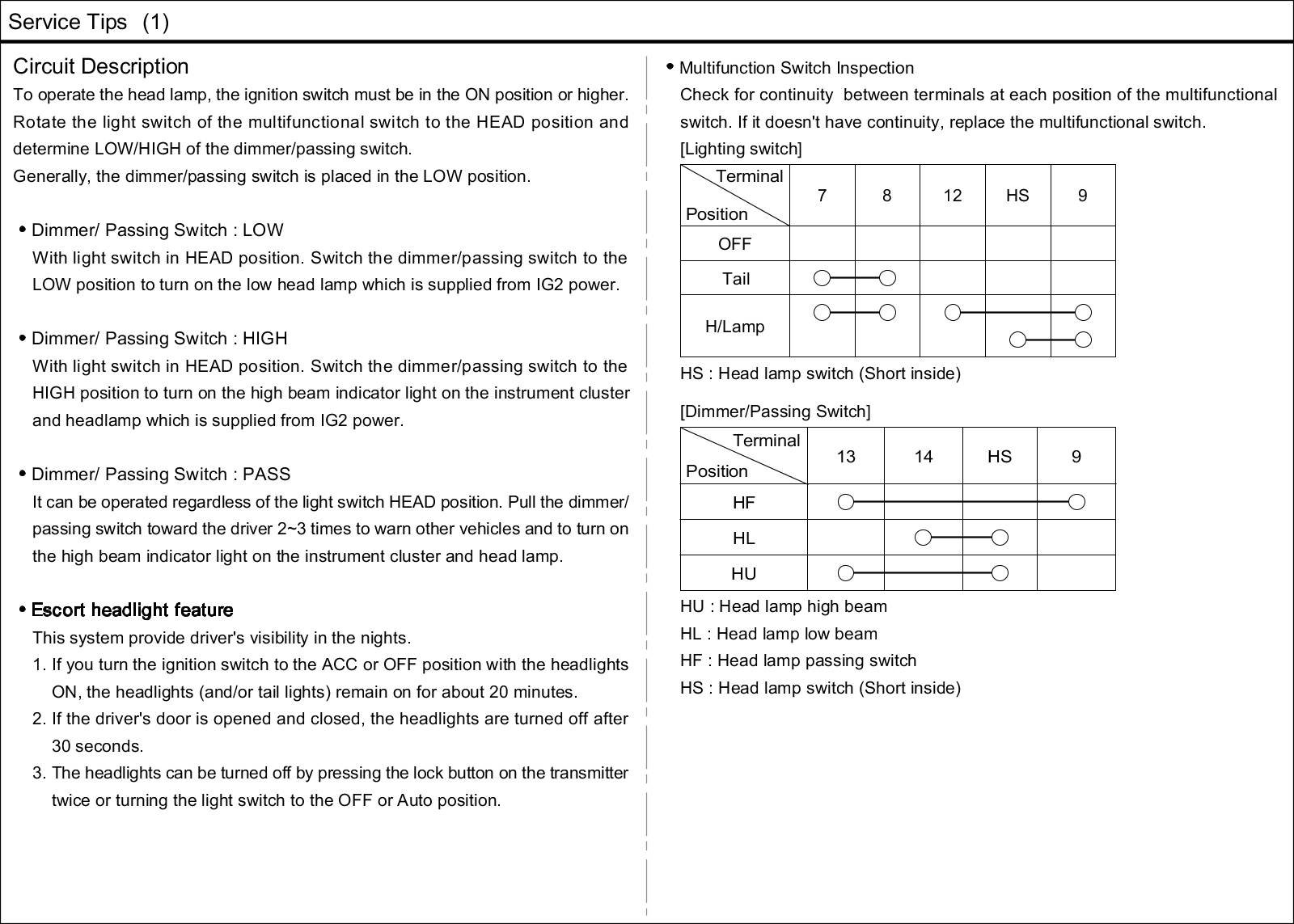 Headlamp: Description and Operation