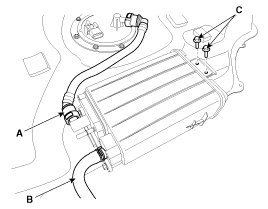 5. Remove the canister assembly after removing installation bolts (C).