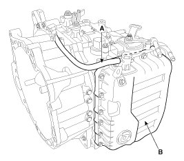6. Remove the bolt (3ea) after disconnecting the solenoid valve connector (B) and the oil temperature sensor connector (A).