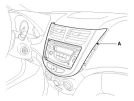 2. Using a screwdriver or remover, remove the center fascia garnish (A).
