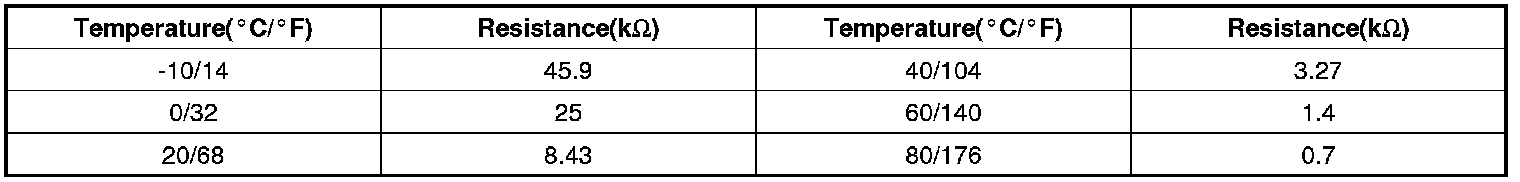 ** Resistance value of Engine coolant temperature sensor as a function of temperature.