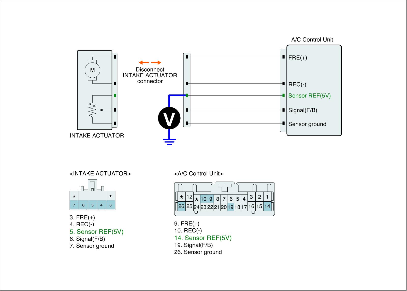 2. Disconnect Intake actuator and Connect A/C control unit main harness connector.