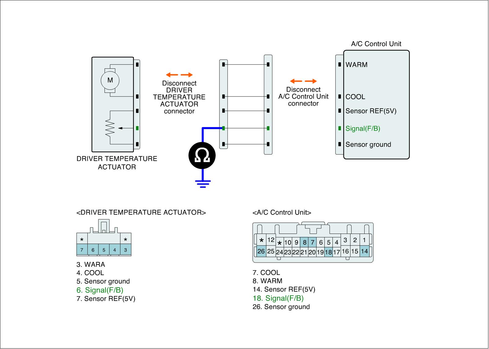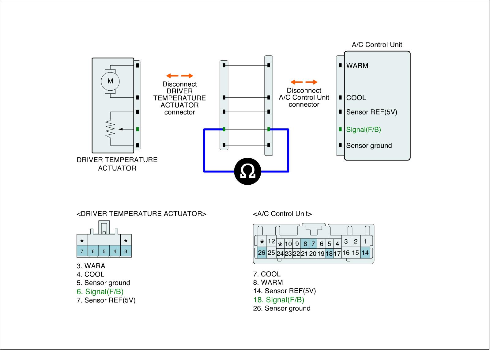 3. Measure resistance between Signal(F/B) terminal of Driver air mix actuator harness connector and chassis ground.