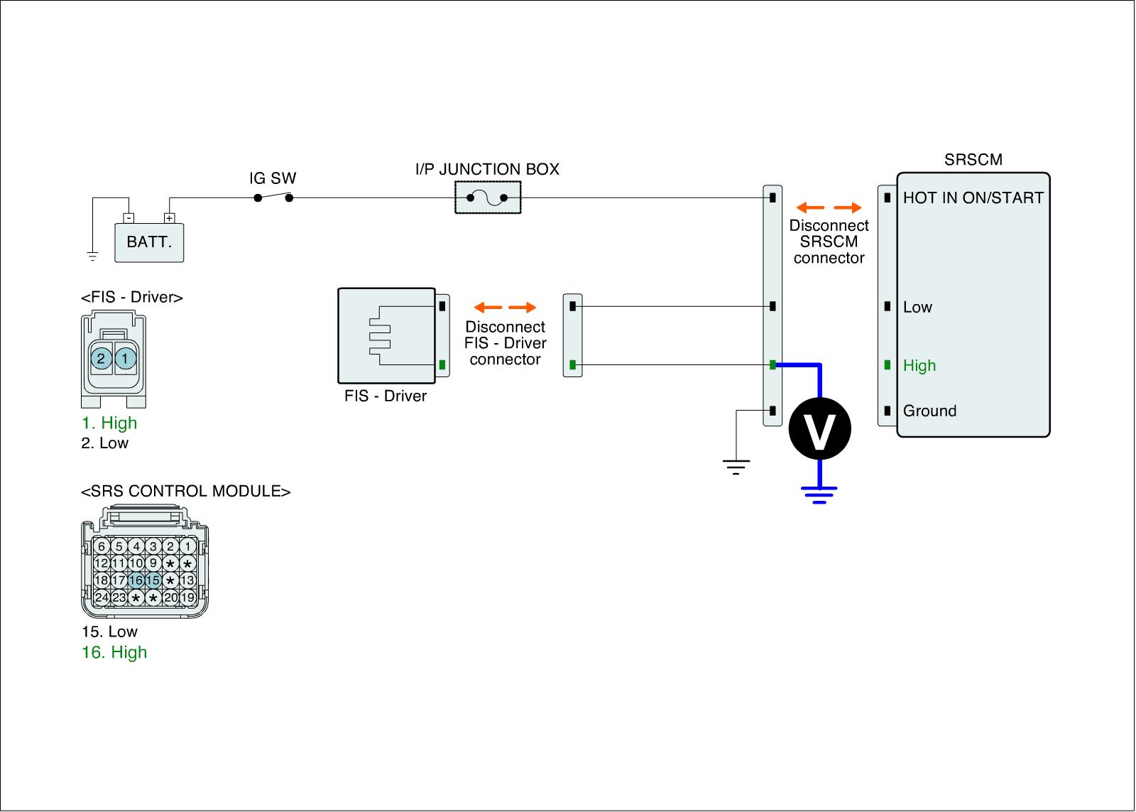 B1327 FIS(Front Impact Sensor)-Driver Short to Battery - Inspection/Repair:_:W/Harness Inspection
