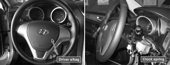 Clock spring is located between steering wheel and column. It connects SCSRM to DAB.