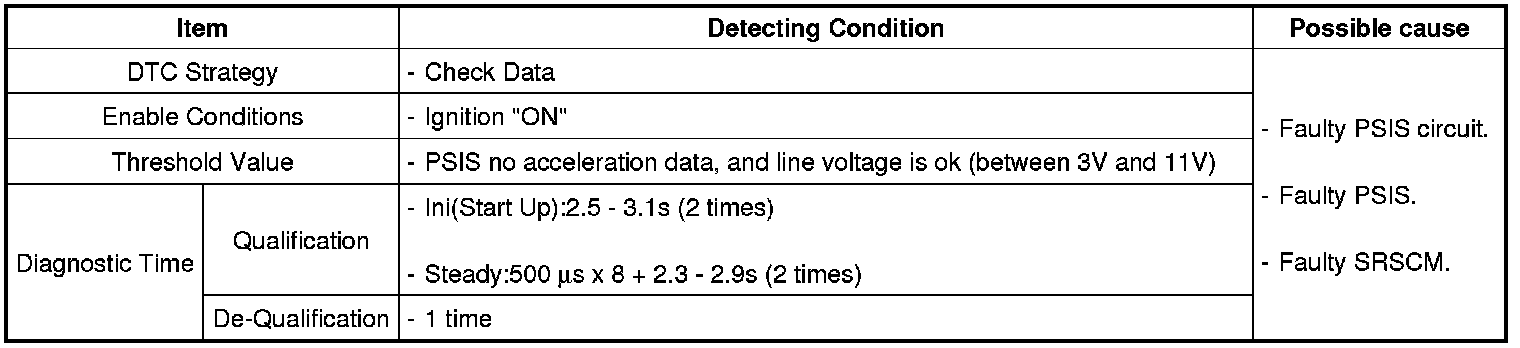 The SRSCM sets DTC B1410 if there is any error in communication between PSIS and SRSCM.