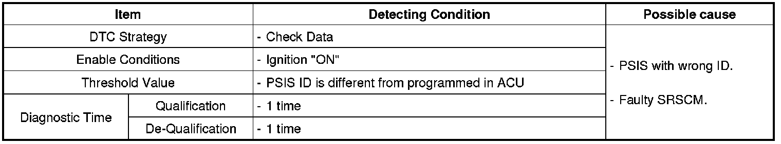 The SRSCM sets DTC B1415 if PSIS with wrong ID is detected.