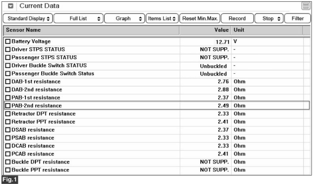 3. Monitor the "Passenger airbag(2nd stage) resistance" parameter on the Scantool.