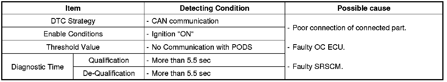 The SRSCM sets DTC B1493 if there is any error in communication between OC Passenger Sensor and SRSCM.
