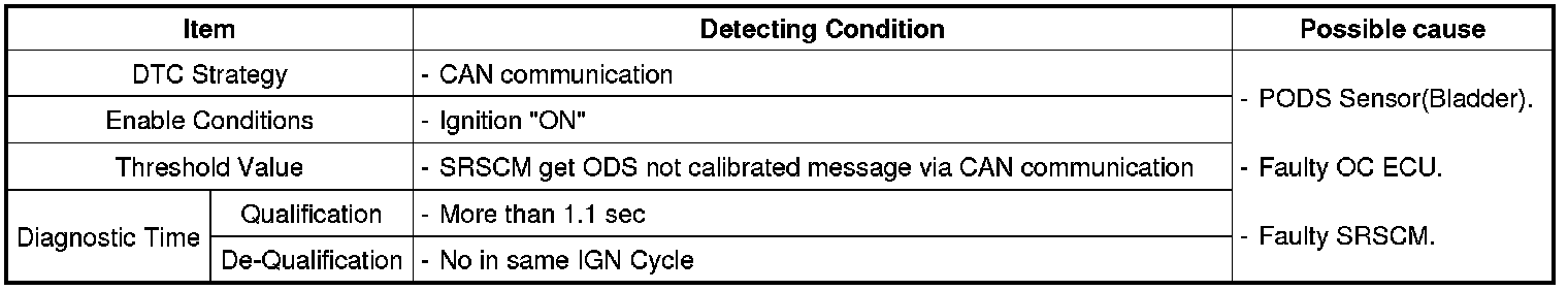 The SRSCM sets above Diagnosis trouble code in case of PODS not calibrated.