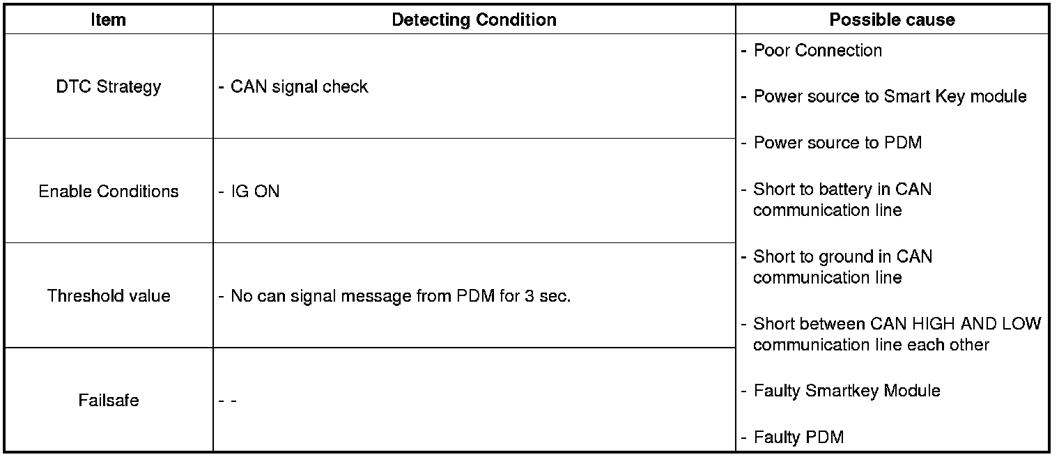 Smart Key module sets DTC B1689 if Smartkey Module have not received CAN signal from PDM for 3 sec.
