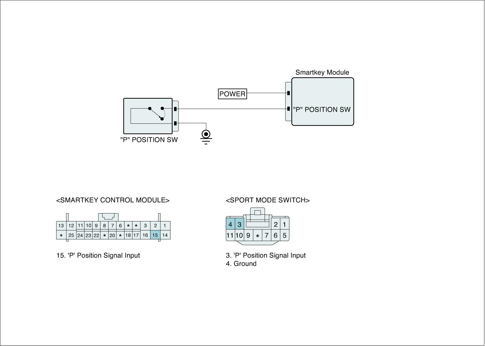 Smartkey Module decides that engine starting is enable after receiving Parking Position Switch signal.