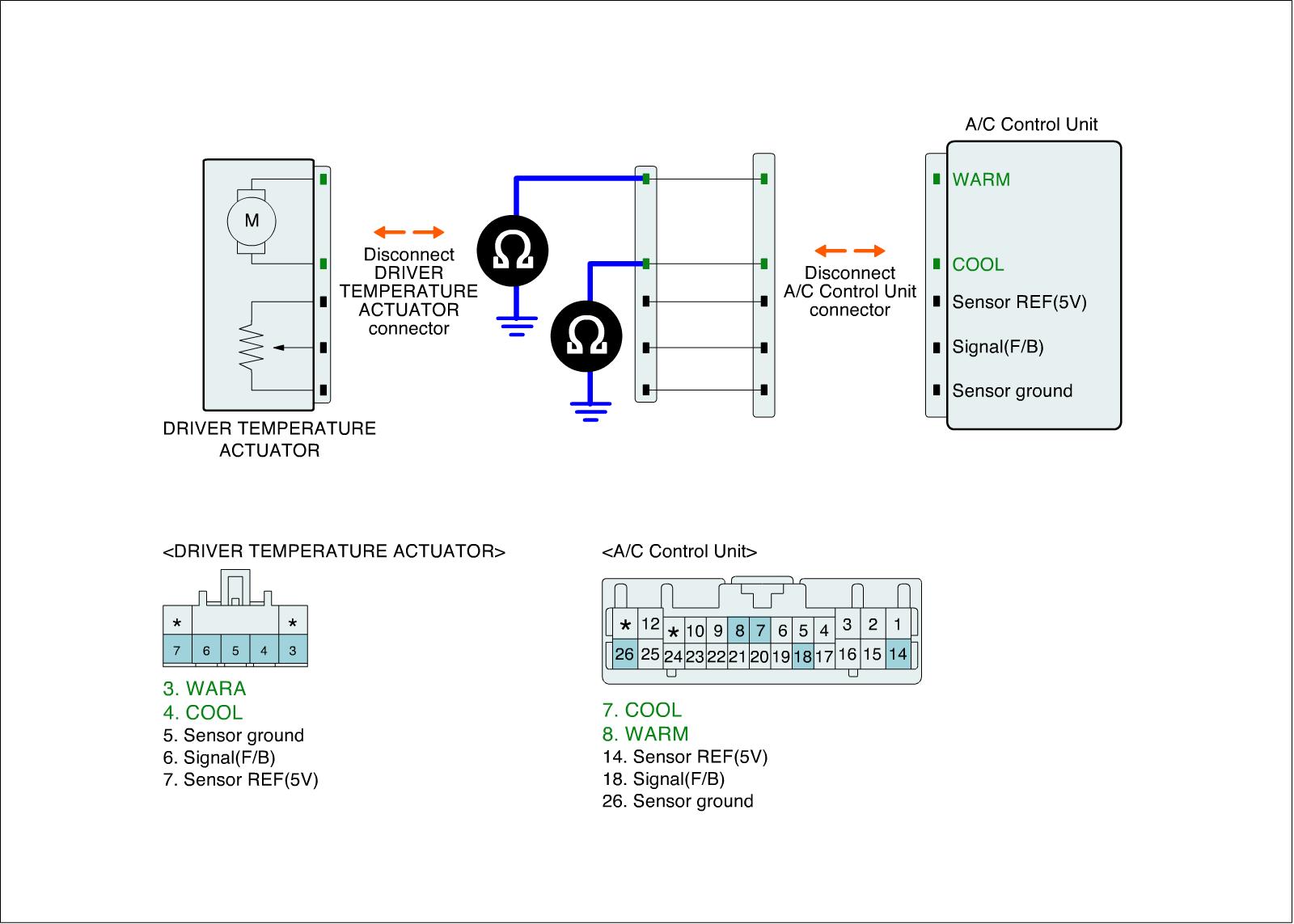 2. Disconnect Driver air mix actuator and A/C control unit main harness connector.