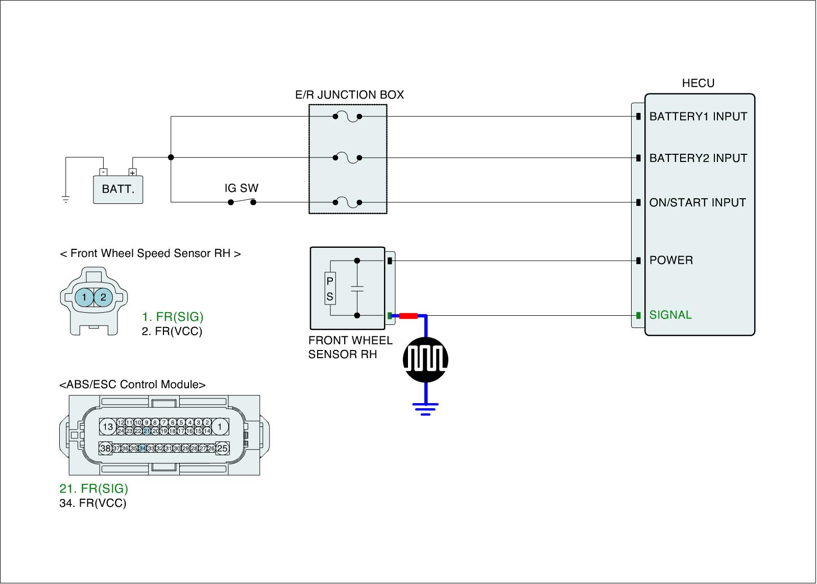 C1203 Wheel Speed Sensor Front-RH Open/Short - Inspection/Repair:_:Component Inspection