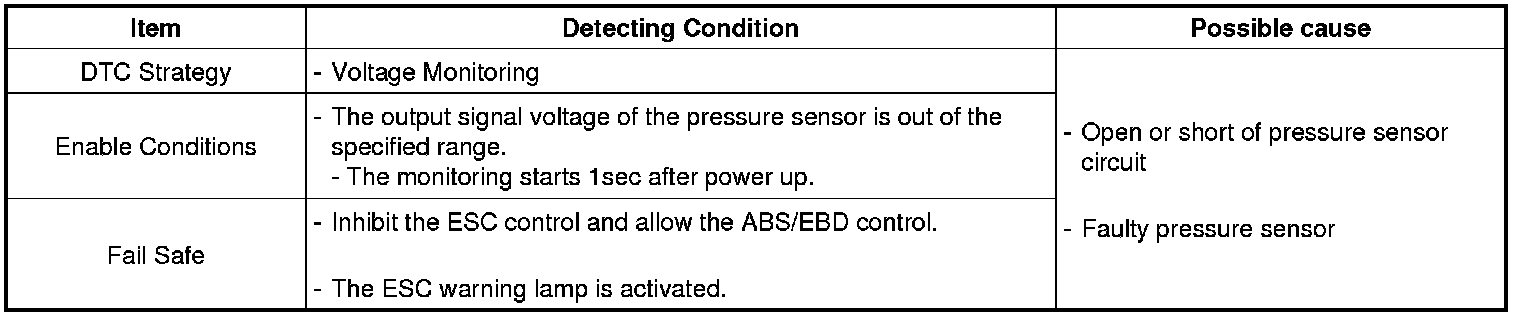 A failure is detected if the output signal voltage of the pressure sensor is out of specified range.