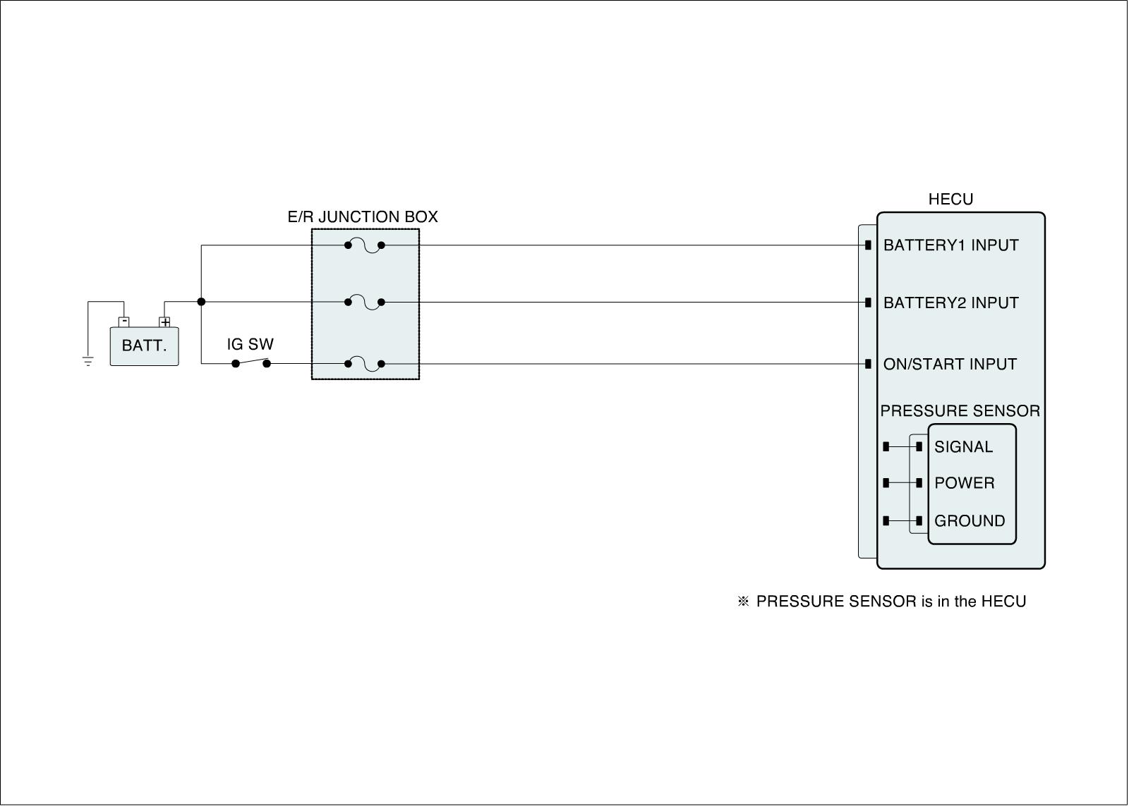 The sensor output is a analog signal in proportion to supply voltage, and the HECU recognizes a pressure value according to signal ratio about supply voltage.