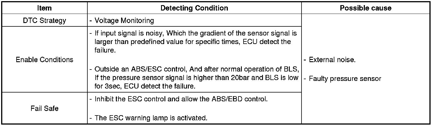The failure is detected if the pressure sensor signal noise is out of normal range, or the pressure sensor signal is changed abnormally.