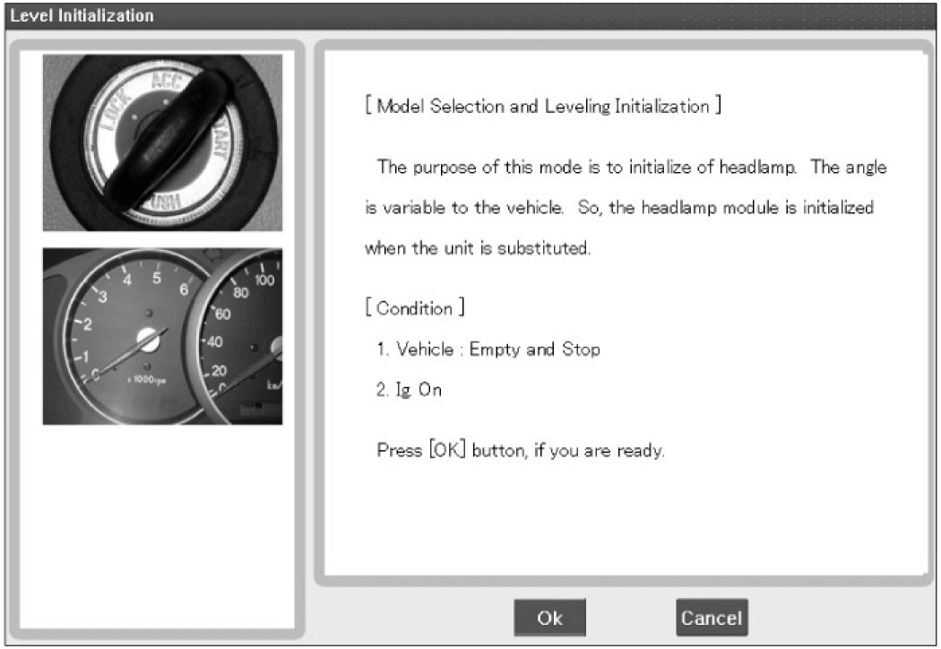Perform Vehicle Selection and Level Initialization with scantool if AHLS ECM is repalce. (Auto Levelling Sensor)