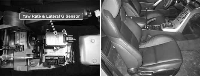 The lateral G sensor senses vehicle's lateral G. A small element inside the sensor is attached to a deflectable leverarm by lateral G.