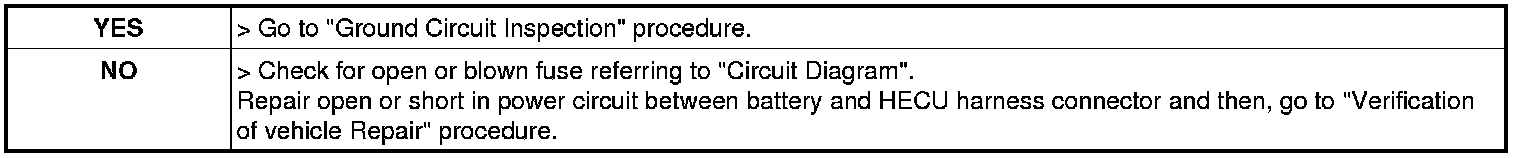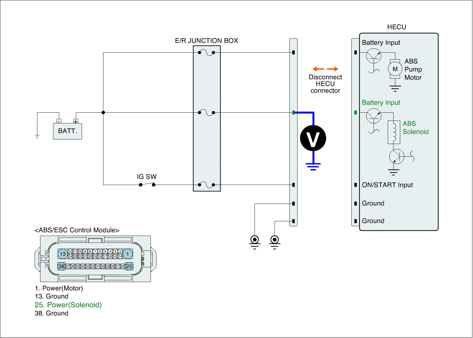 2. Measure voltage between power terminal of the HECU harness connector and chassis ground.