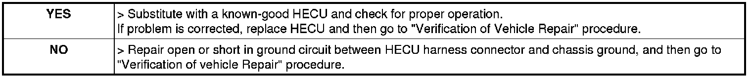 3. Measure resistance between ground terminal of the HECU harness connector and chassis ground.