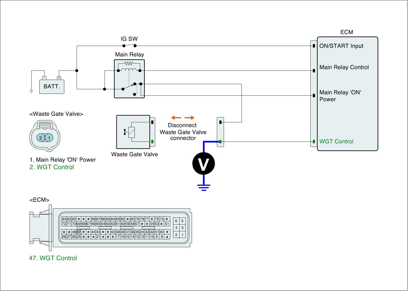1. Measure voltage between control terminal of the WGT harness connector and chassis ground.