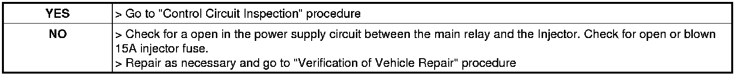 2. Measure voltage between power terminal of the injector harness connector and chassis ground.