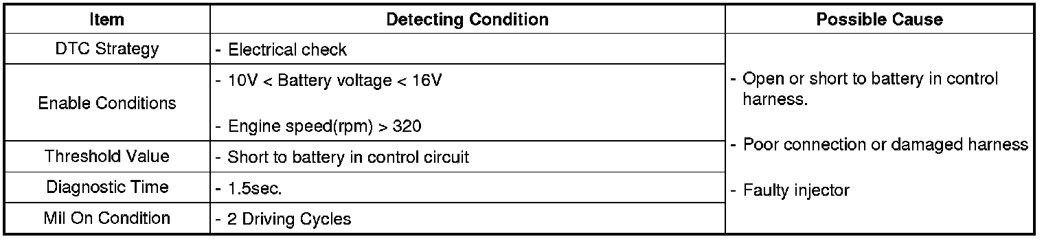 ECM sets DTC P0271 if the ECM detects that injector (Cylinder #4) control circuit is open or shorted to battery voltage.