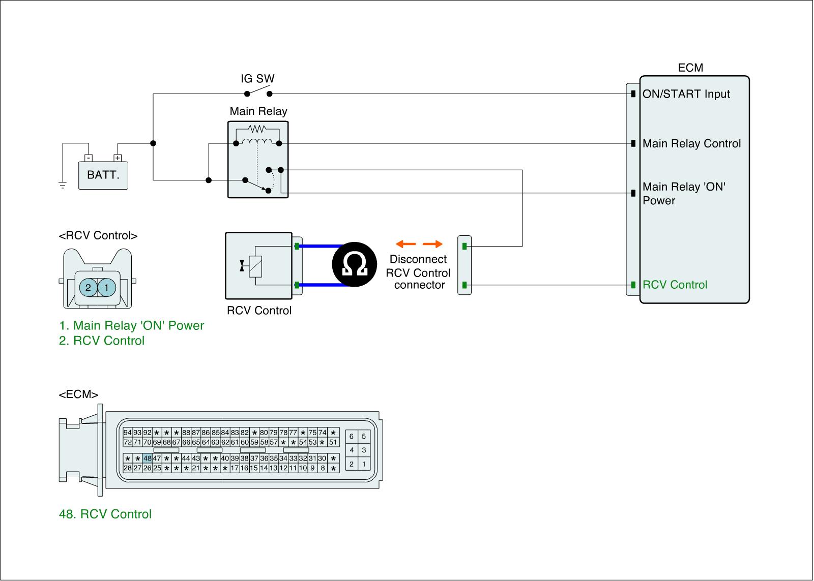 4. Measure resistance between control terminal and power terminal of the RCV connector. (Component side)