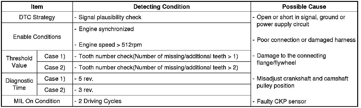 The ECM sets DTC P0336 when the crankshaft signal is missing while camshaft signal is detected.