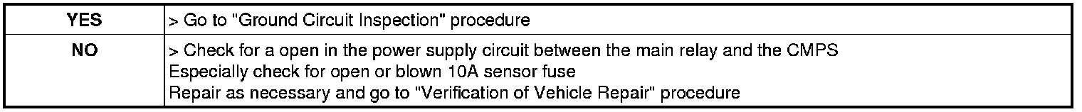 4. Measure voltage between power terminal of CMPS #1 harness connector and chassis ground.