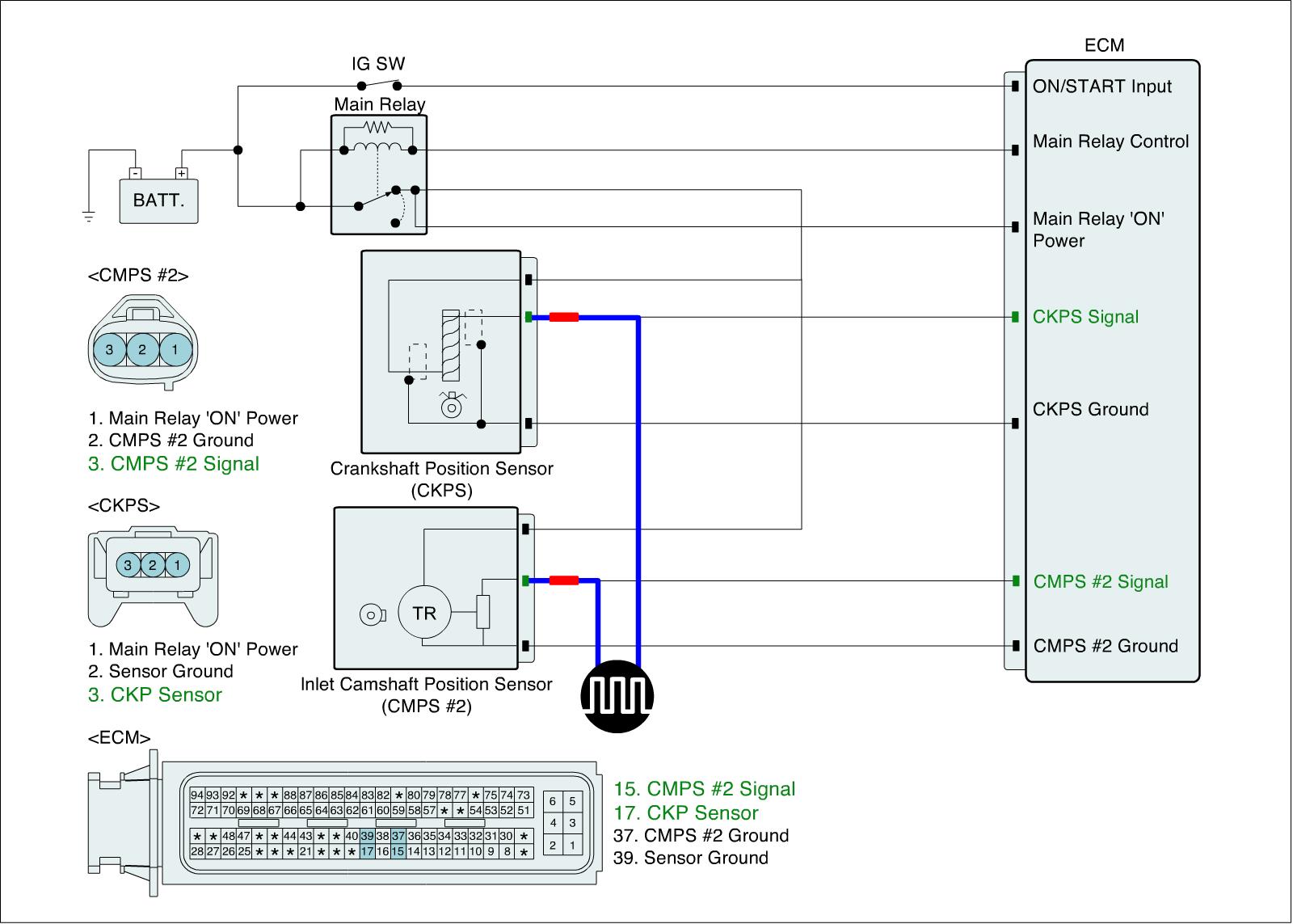 2 There are 3 - 5 signals of CKPS between the switching point of CMPS #2 and the missing tooth of CKPS.