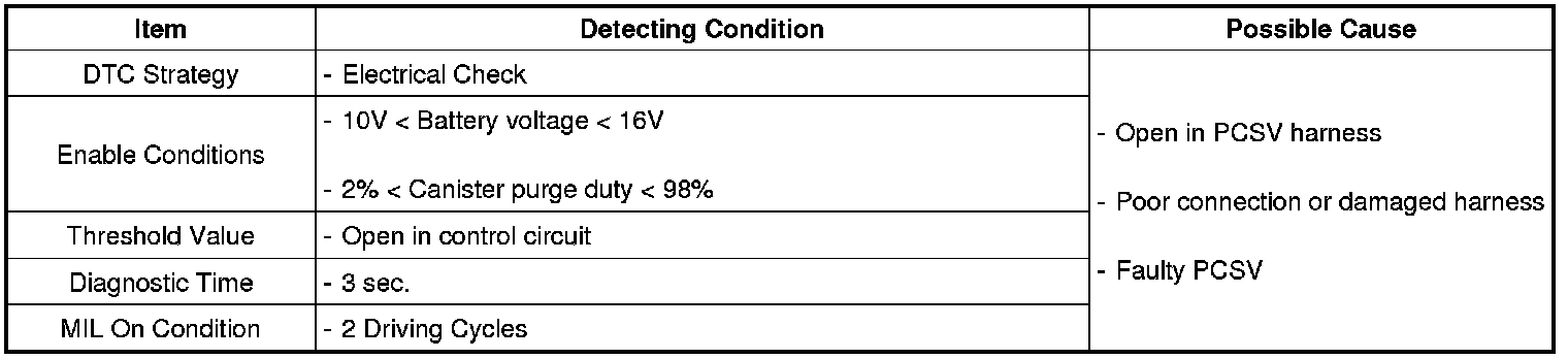 ECM sets DTC P0444 if the ECM detects that the PCSV control circuit is open.