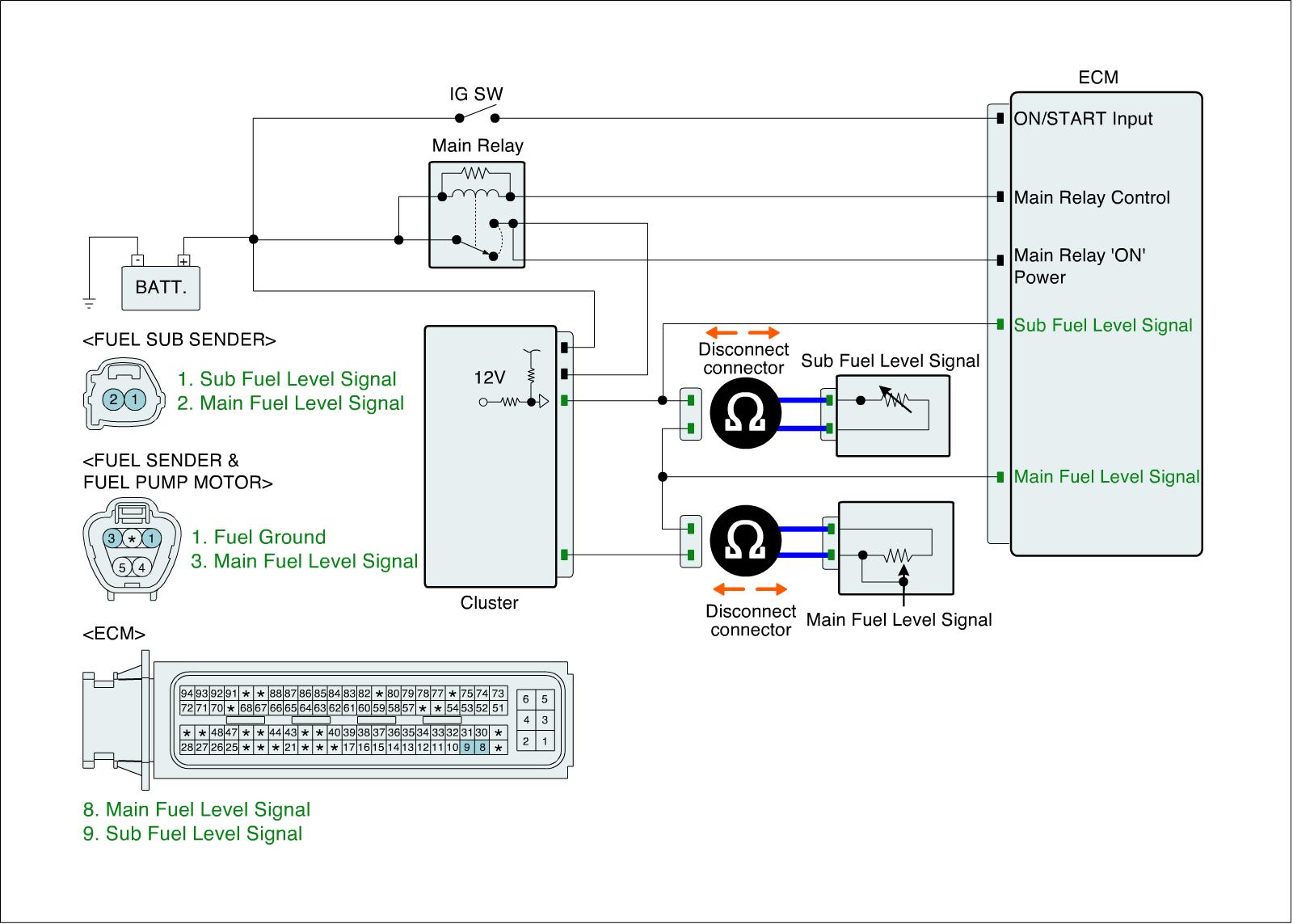 Sub fuel level sender resistance : 4.5 - 110.5 Ohms