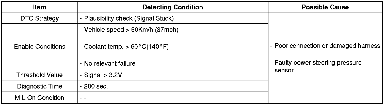 ECM sets DTC P0551 if the ECM detects signal exceeds the possible range of a properly operating sensor