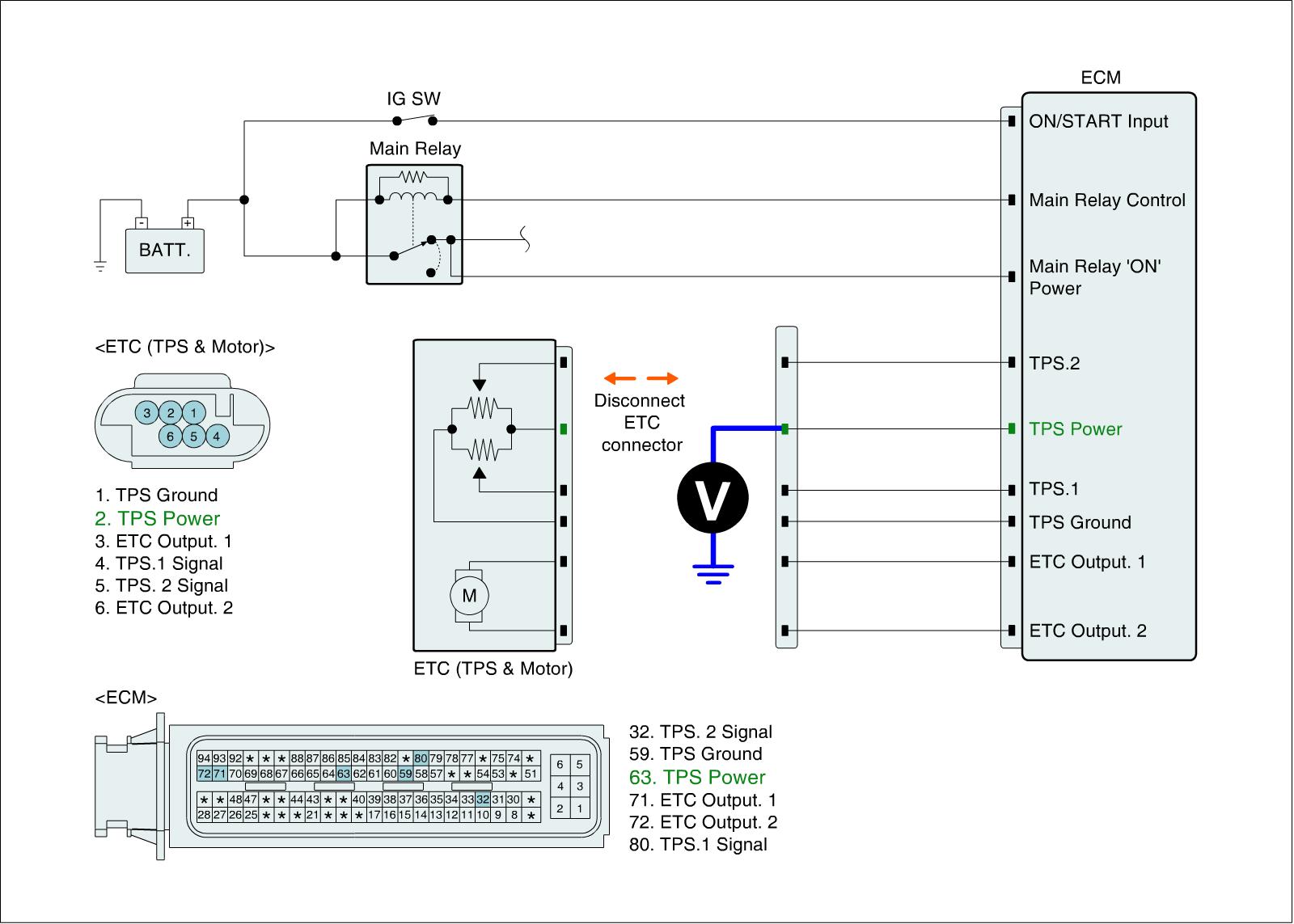 4. Measure voltage between TPS power terminal of ETC harness connector and chassis ground.