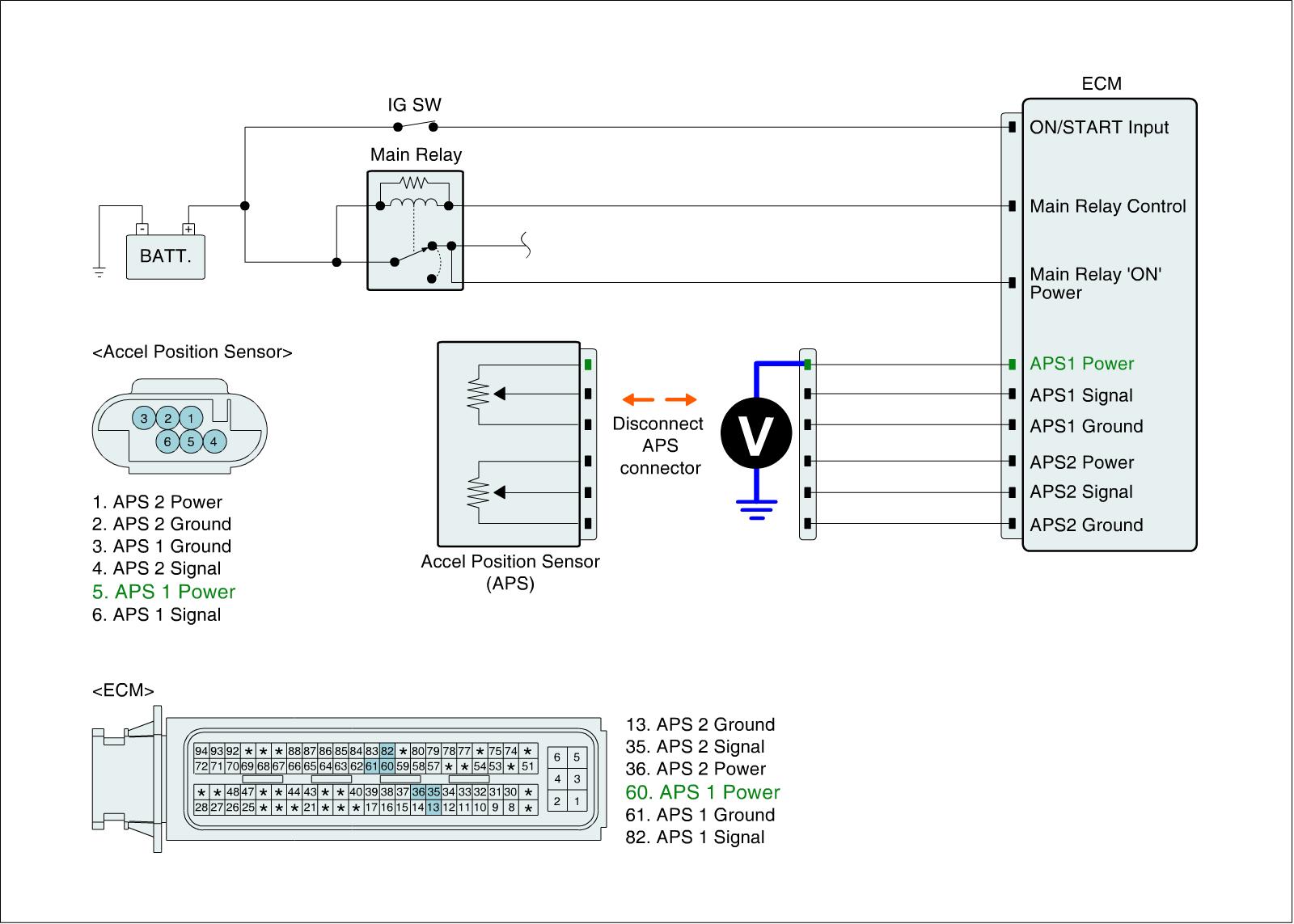 4. Measure voltage between APS1 power terminal of APS harness connector and chassis ground.