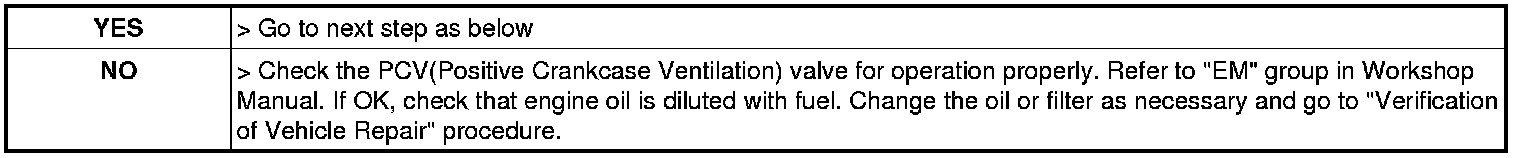 2. Check crankcase ventilation valve for improper installation, damaged o-rings and malfunctioning.