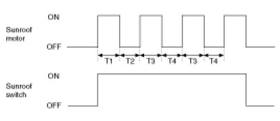 In order to protect the sunroof motor from overheating from continuous motor operation, the sunroof ECU controls the Run-time and Cool-time of the motor as follows: