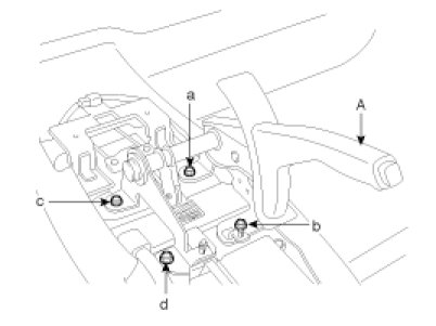1. Install the parking brake lever assembly, then tighten the mounting bolts in alphabetic order.