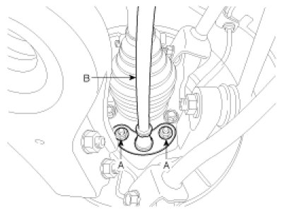 3. Install the adjuster assembly (B) and the lower return spring (A).