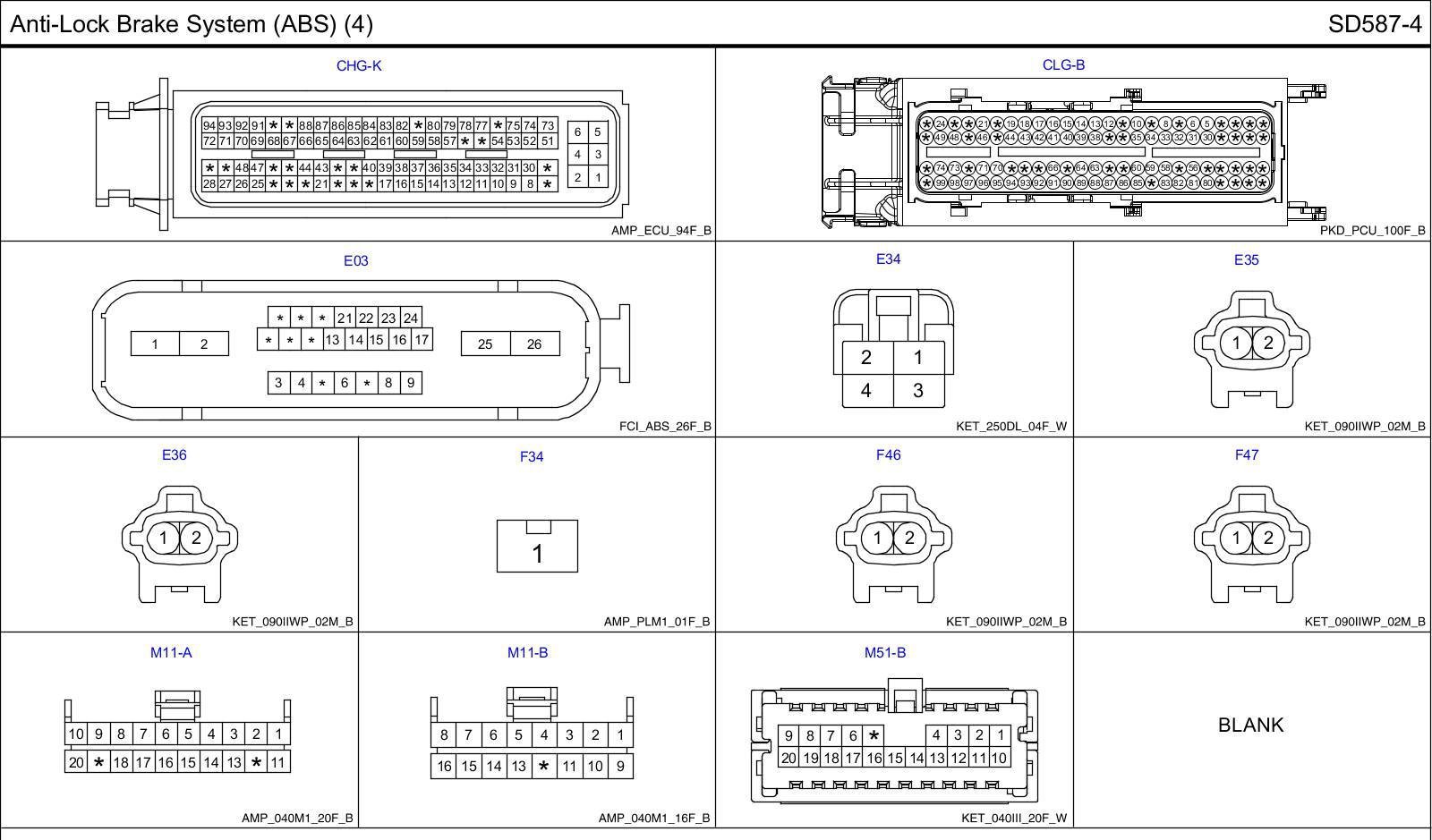 Anti-Lock Brake System (ABS) (4) Connector Pin Outs: