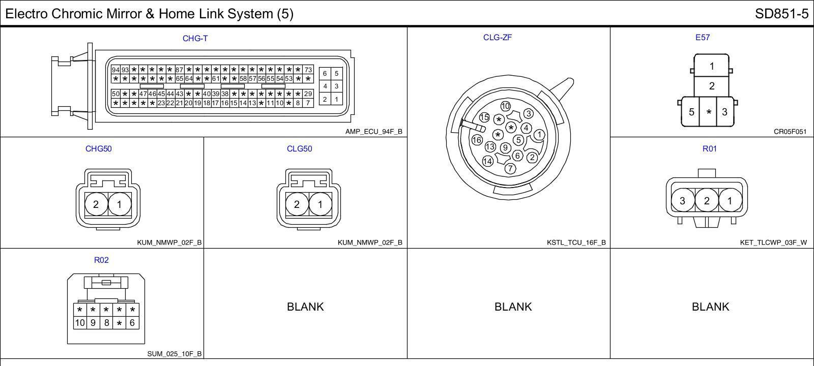 Electro Chromic Mirror & Home Link System (5) Connector Pin Outs: