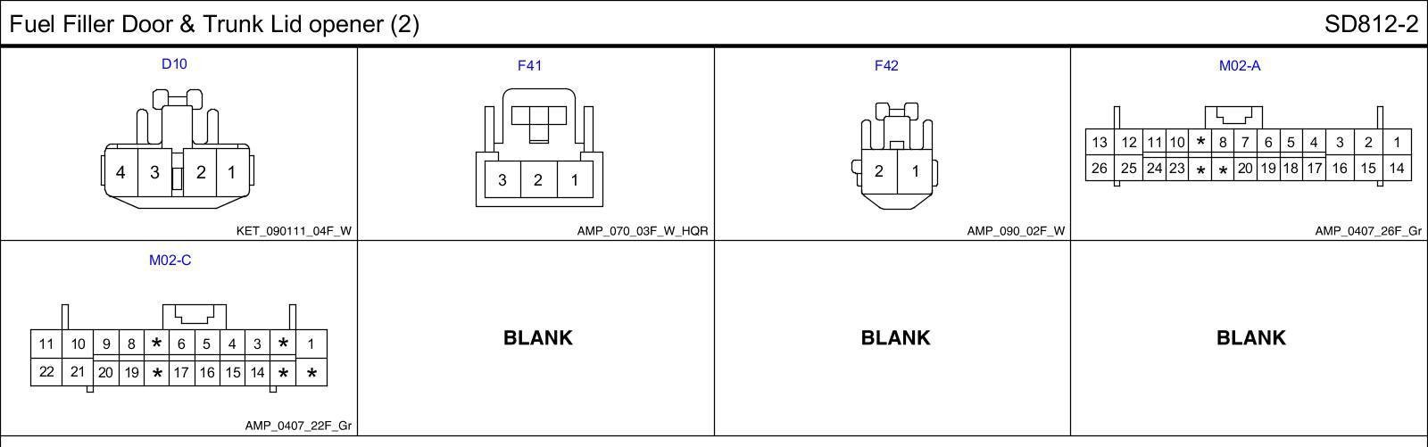 Fuel Filler Door & Trunk Lid Opener (2) Connector Pin Outs: