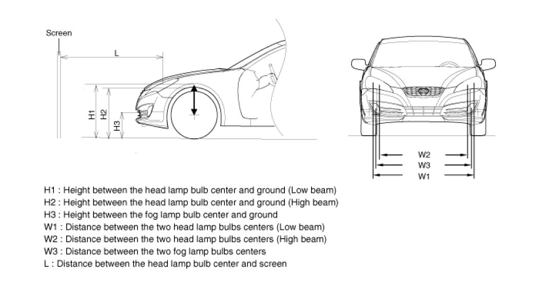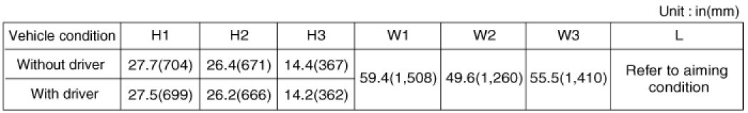 The front fog lamps should be aimed as the same manner of the head lamps aiming.