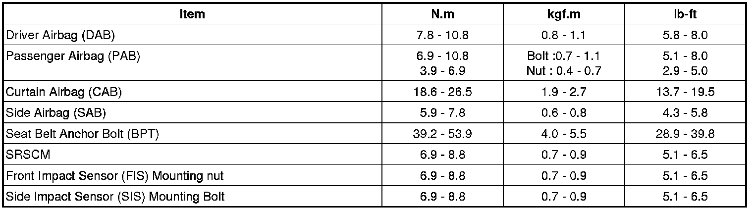 Tightening Torques