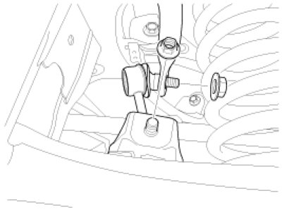 2. Loosen the nuts and then remove the stabilizer link from stabilizer bar and lower arm.