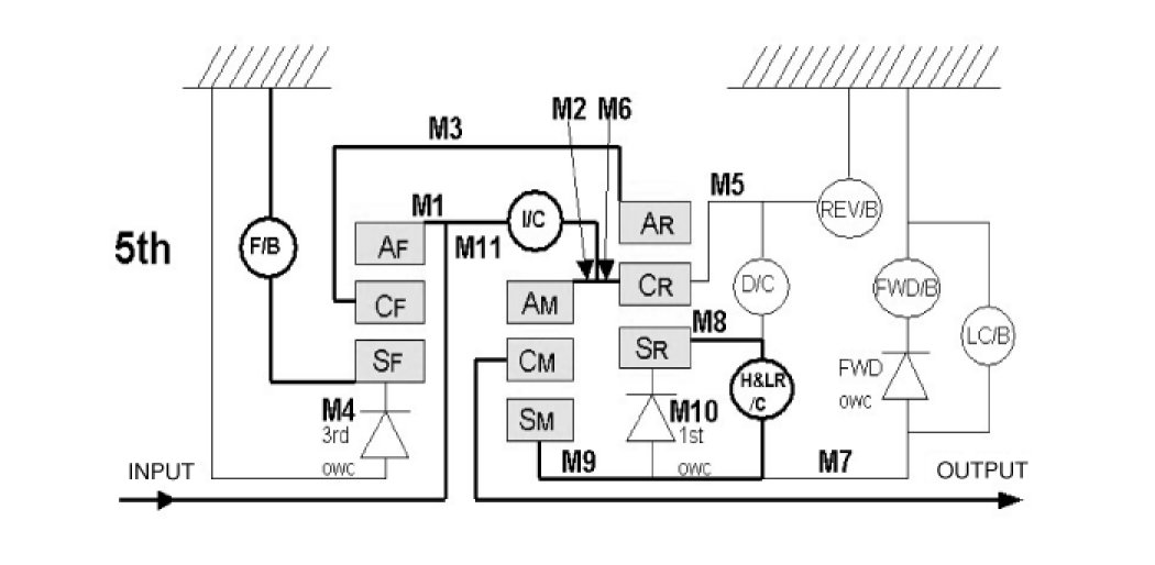 The A5SR1 is a 5-speed, electronically controlled transmission featuring sports mode shifting. The control valve assembly features an integrated electronic control unit.